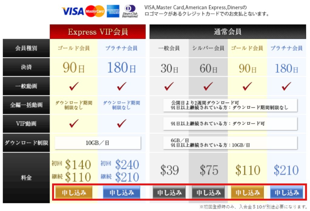 EXPRESS VIP会員(EXPRESS VIP料金$30)