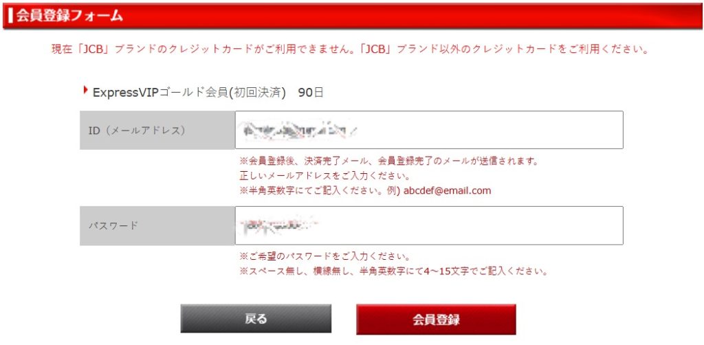 当サイトでは、クレジットカード会員継続決済の失敗から15日間以内に再会員登録をしていただいた場合、同じID(メールアドレス)、パスワード、VIP会員特典を継続してご利用になれます。但し、お客様が退会手続きをされた場合、もしくは、クレジットカード会員継続決済の失敗から15日間を経過した場合は、会員登録に伴う入会金は再度必要になります。また、VIP会員のVIP会員特典は引き継ぐことが出来ません。予めご了承ください。