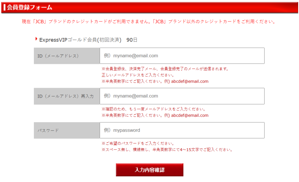 すべての記入欄をもれなく記入いただいかどうかご確認ください。また、記入欄に正確にご入力下さい。ご入力頂くクレジットカード情報などは半角の英数文字でご入力下さい。日本語モードでの入力、全角文字、漢字、空白スペース、ハイフン(-)等の入力はできませんので、ご注意してご入力下さい。全て正確にご入力下さってもエラーとなる場合は、エラーメッセージと詳細をお書き添えの上、サポートよりお問い合わせください。また、決済ボタンを押しても数分以上完了のページが出てこない場合も恐れ入りますがサポートよりお問い合わせください。